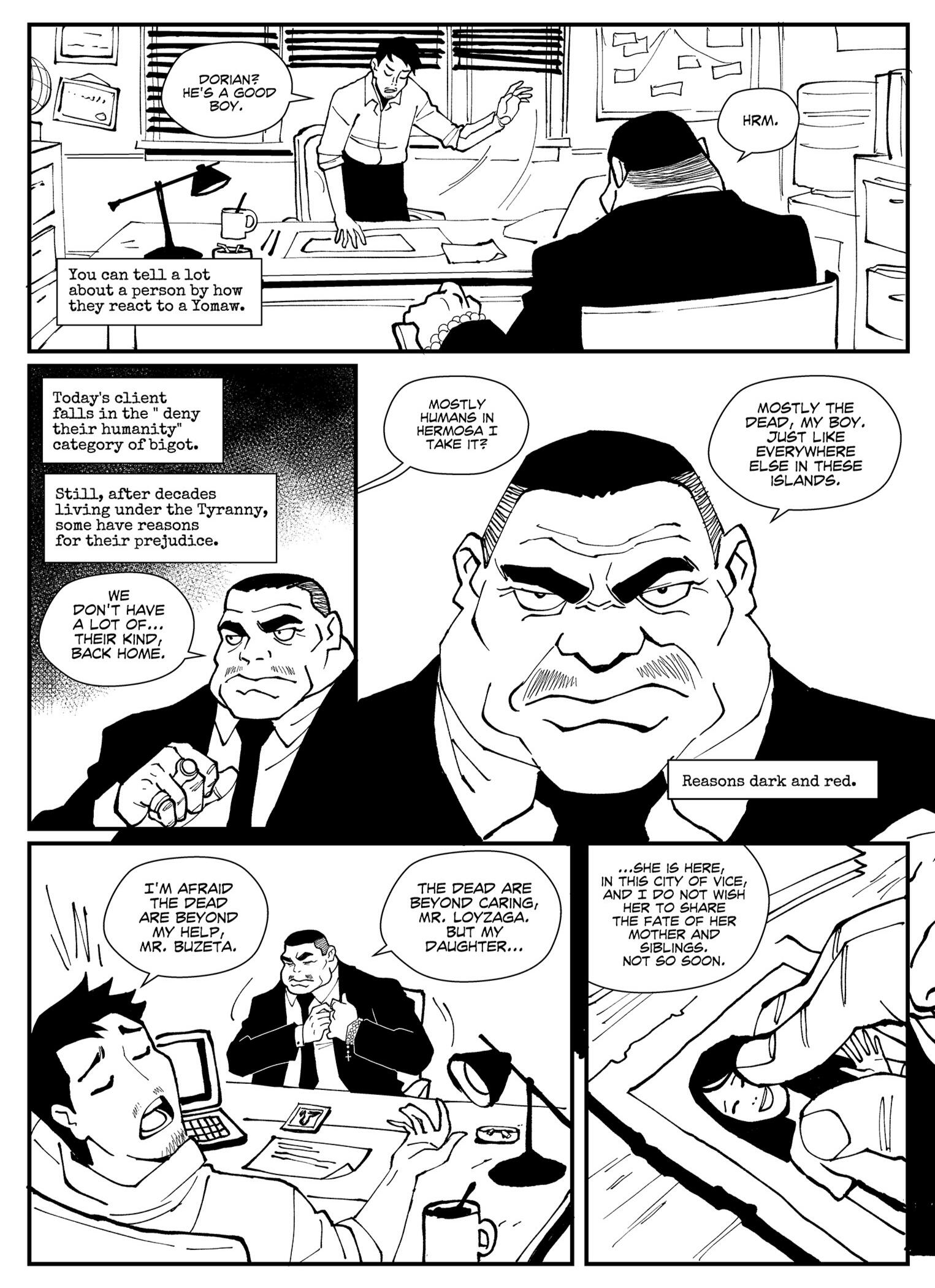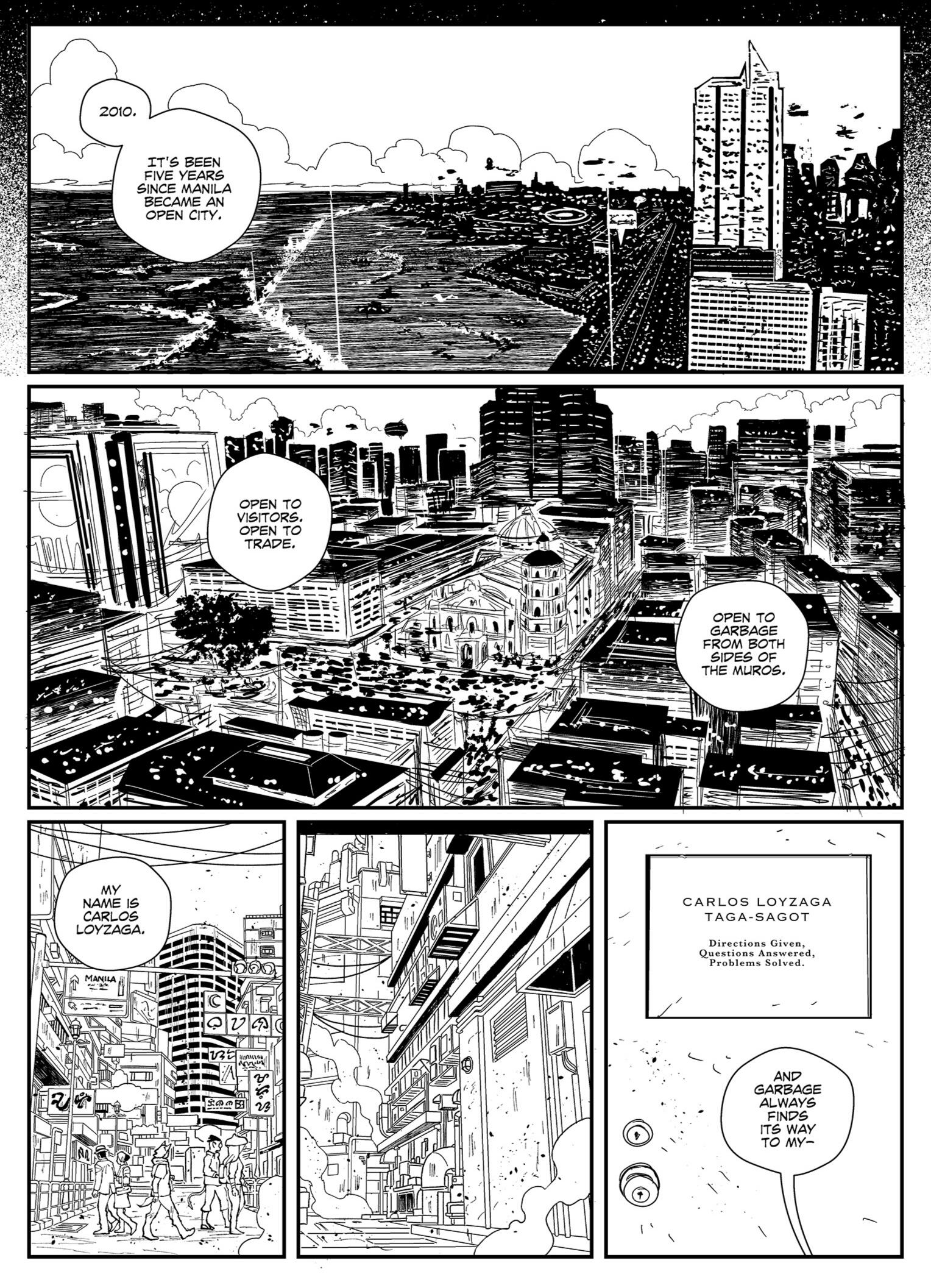 For much of recent history, the Philippines was sealed away from the rest of the world by a magical wall called the Muros, ruled by Sitan, the God of Despair. Now, with Sitan defeated, Manila has become an Open City, and travel to and from the outside world has become possible for the first time since the summoning of Sitan after the Bataan Death March. In this story, a young Taga-sagot named Caloy Loyzaga agrees to find a missing girl in In this alternate Manila, a place where magic mixes with technology, and vengeance is currency.